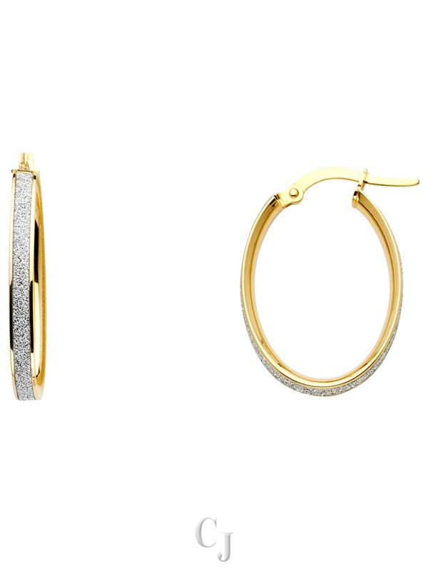 14KY Spark Oval Hoop Earrings (20mm)