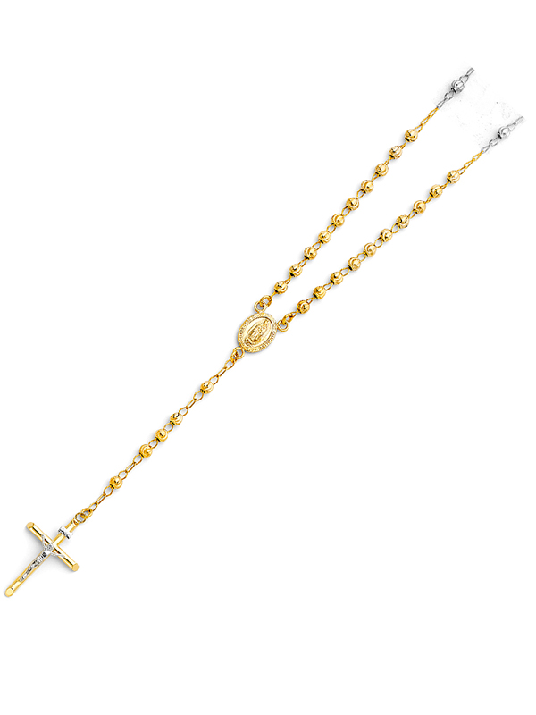 14KY Two-Tone Gold 4mm Moon Ball Rosary Necklace – 20″