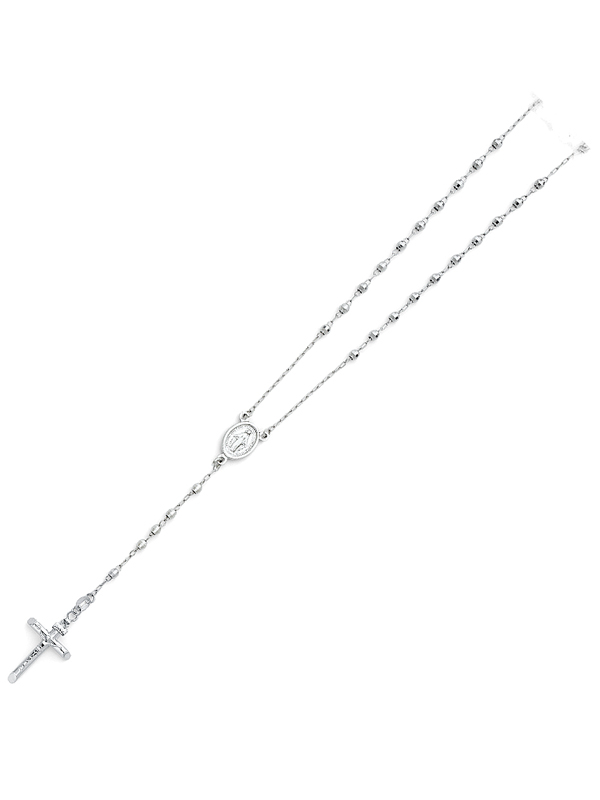 14KY White Gold 3mm Disco Ball Rosary Necklace – 26″