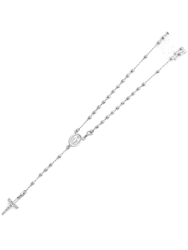 14KY White Gold 3mm Moon Ball Rosary Necklace – 18″