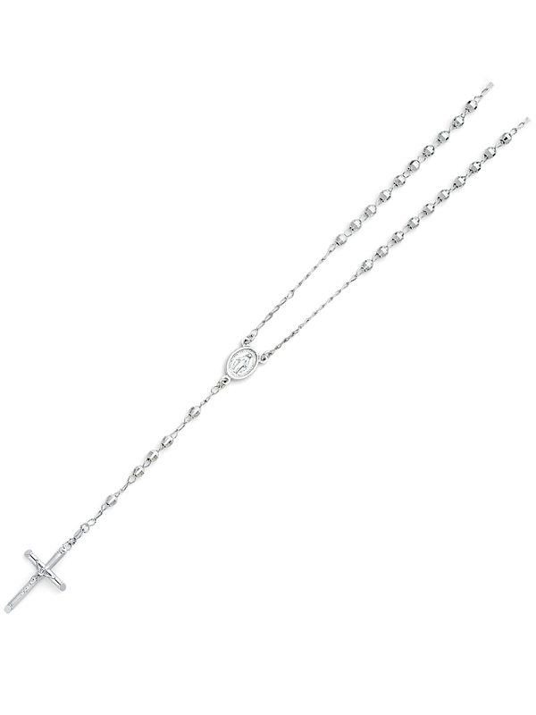 14KY White Gold 4mm Disco Ball Rosary Necklace – 26″