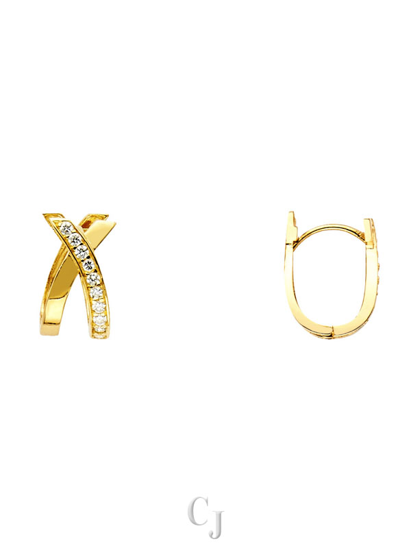 14KY X Design Round CZ U Shape Earrings (8X15mm)