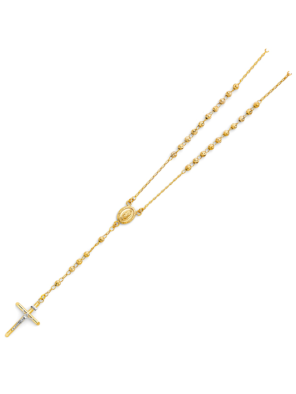 14KY Yellow Gold 4mm Moon Ball Rosary Necklace – 26″