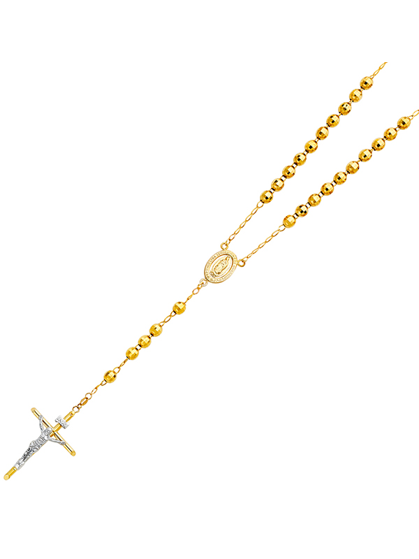 14KY Yellow Gold 6mm Disco Ball Rosary Necklace – 26″