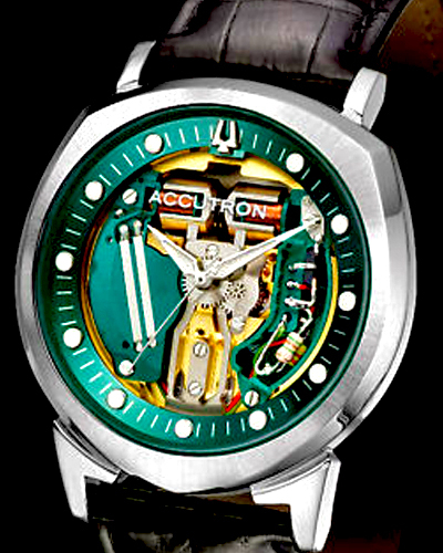 - Movement The movement is a hand assembled Accutron calibre 214 with the legendary tunning fork mechanism.