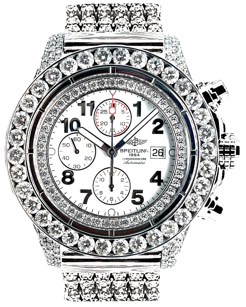BREITLING SUPER AVENGER MEN’S 25 CARATS CUSTOM DIAMOND WATCH A13370