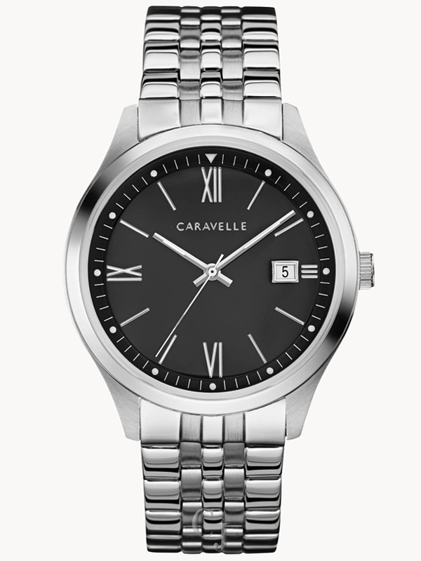 CARAVELLE BY BULOVA DRESS BLACK DIAL STAINLESS STEEL BRACELET WATCH 43B158