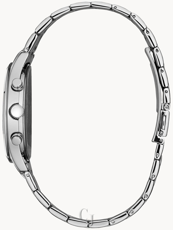 Perfect transition from day to evening, with its tailored lines and luminous hour indicators and hands, this versatile watch, in stainless steel with black dial, features Roman numeral and stick markers, calendar, and double-press fold-over clasp.