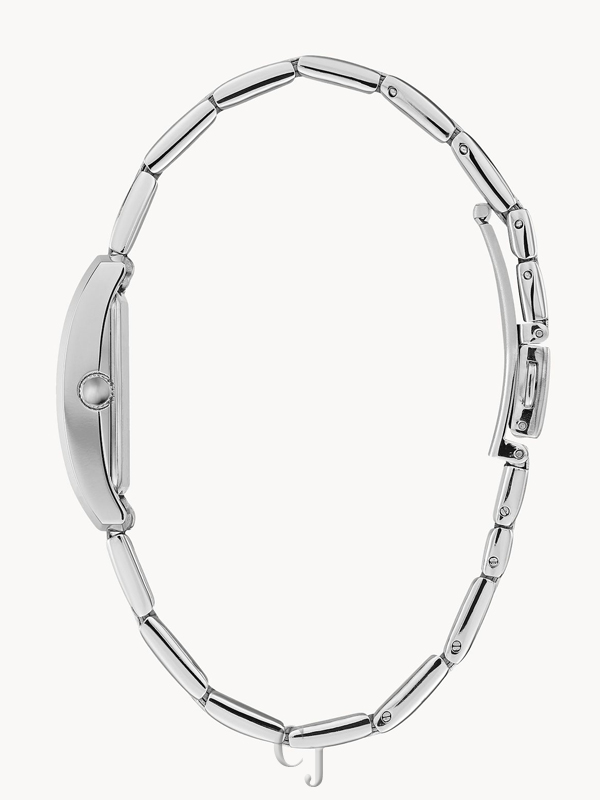 The Caravelle 43L203 is a stylish and precise timepiece featuring a 2035 quartz movement, powered by a battery and known for its remarkable accuracy, deviating by only 15 seconds per month. With a modest 21mm silver-tone stainless steel case and a lug width of 16mm, it offers a sleek and compact design. The silver-tone dial adds a touch of elegance, complementing the stainless steel bracelet strap, which secures with a short fold-over clasp equipped with convenient push buttons. Its curved mineral crystal protects the dial while providing a subtle visual appeal. This watch has a water resistance rating of 30 meters, making it suitable for daily wear, and it offers essential timekeeping functions with its 3-hand display. The Caravelle 43L203 is a blend of functionality and style, perfect for those who appreciate both precision and aesthetics in their timepieces.