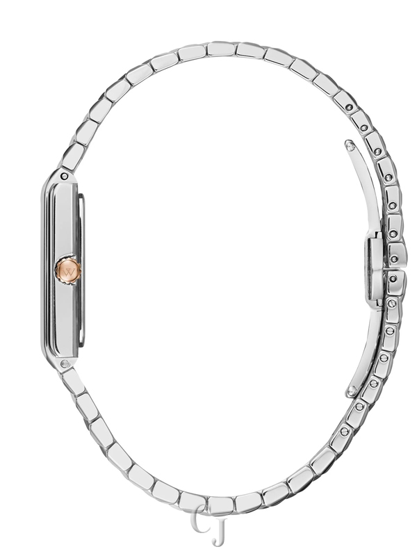 Sophisticated jewelry-inspired styling comes alive with 40 fine-cut hand-set diamonds framing a silver-white mother-of-pearl dial and scratch-resistant sapphire crystal. The added flourish of a high-polish stainless steel case and faceted link bracelet with double-press deployant closure make it an irresistible timepiece.