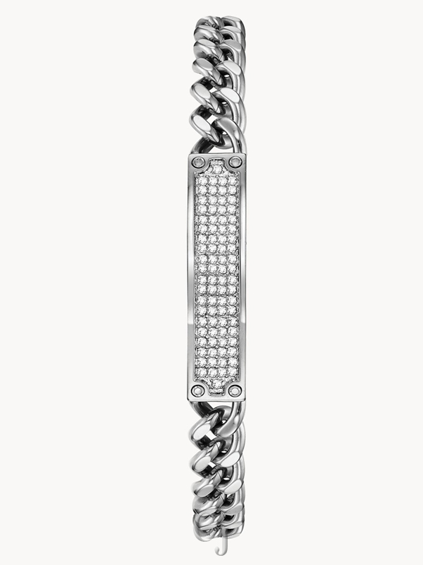From the Crystal collection, this statement-making timepiece and coordinating bracelet is the perfect gift set to make an impression. The watch features brilliant crystals on the silver-tone stainless steel case and bracelet, and on the black dial. It also includes a three-hand quartz movement, deployment closure, and water resistance to 50 meters. The silver-tone chain bracelet features crystal accents. Presented in an elegant gift box.