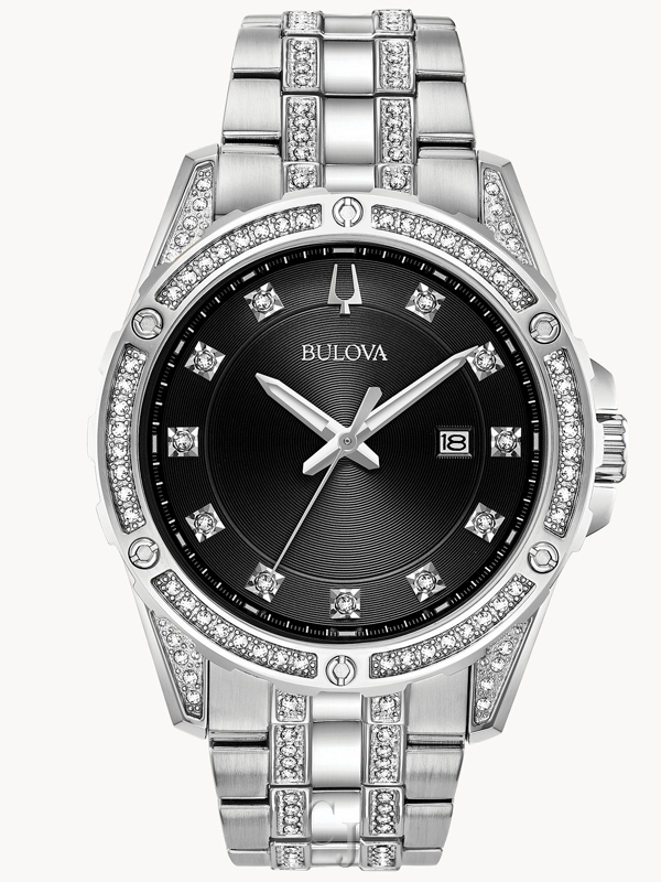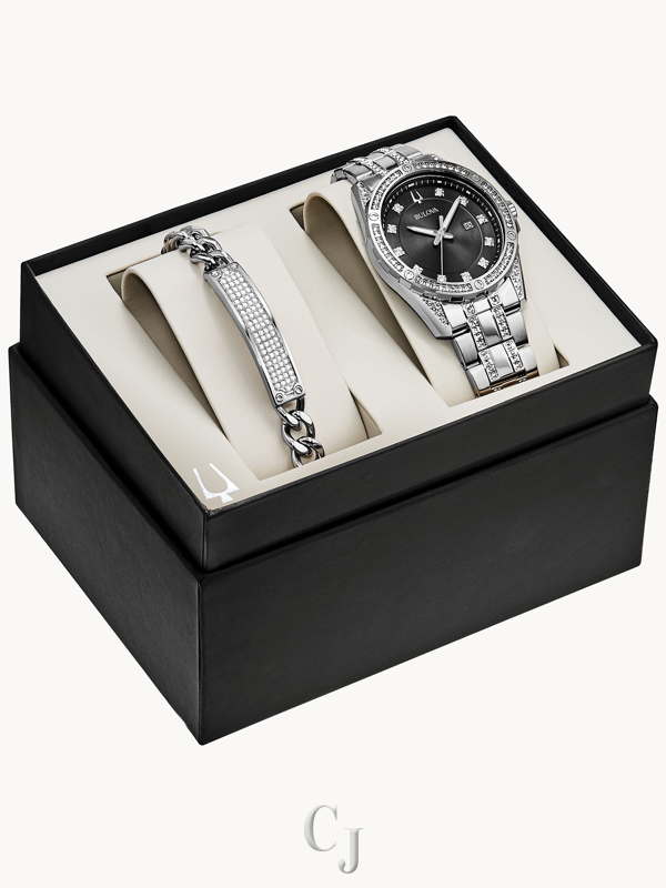 BULOVA CRYSTAL BLACK DIAL STAINLESS STEEL BRACELET BOX SET 96K105