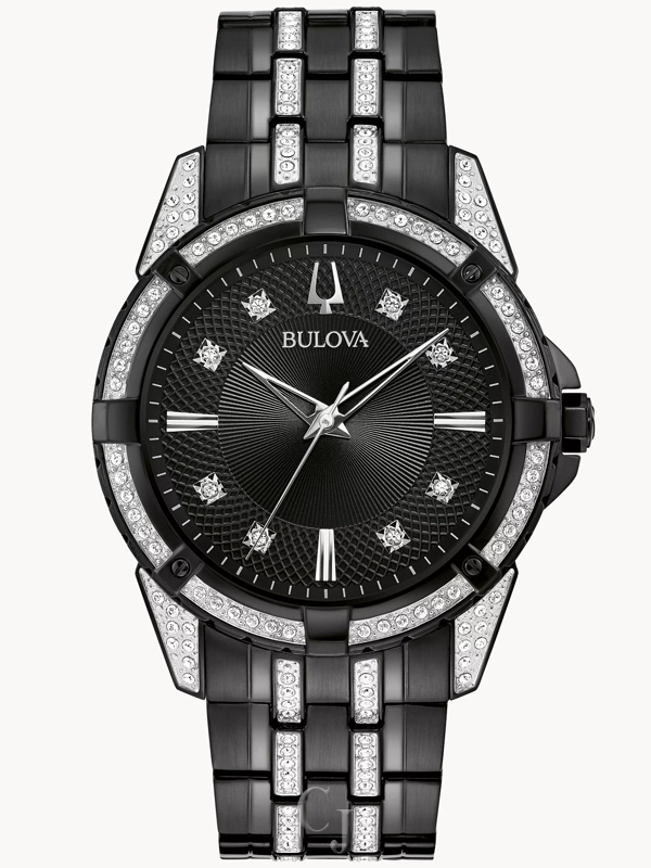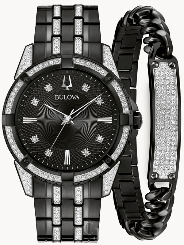 BULOVA CRYSTAL BLACK DIAL STAINLESS STEEL BRACELET BOX SET 98K109