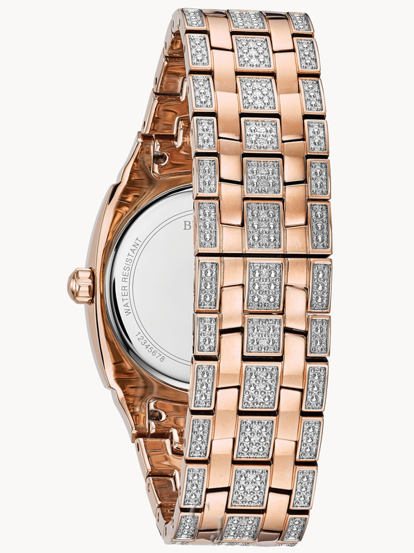 BULOVA CRYSTAL PHANTOM ROSE GOLD SILVER WHITE DIAL WATCH 98B324