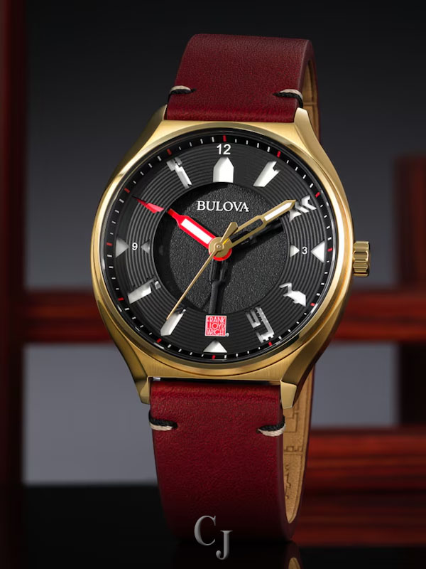 The Bulova Frank Lloyd Wright Men’s Watch (Model 97A192) is a refined collector’s piece inspired by Wright’s Usonian homes. It features a 40mm gold-tone stainless steel case with a transparent case back, showcasing a self-winding automatic movement with 21 jewels and a 42-hour power reserve. The black multi-layer dial draws from Wright’s iconic designs, accented with white Super-LumiNova, red and gold-tone hands, and a red hour indicator. A sapphire crystal with anti-reflective coating ensures clarity, while the burgundy leather strap with a buckle clasp completes the look. Stylish, functional, and thoughtfully crafted, it’s a tribute to timeless design.