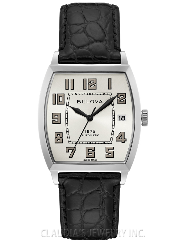 The Joseph Bulova Collection pays homage to the brand’s visionary founder. Stainless steel case with a beige sunray brushed dial and painted Arabic markers. Open case back showcasing the fine Swiss made 26-jewel automatic movement, featuring the Joseph Bulova signature, “1875” and “Swiss Made”, and a custom-designed rotor. Black leather alligator grain strap with the “Joseph Bulova” signature on the interior lining and a deployant closure with pushers. Domed sapphire crystal with anti-reflective coating. 38-hour power reserve. Limited to 350 pieces.