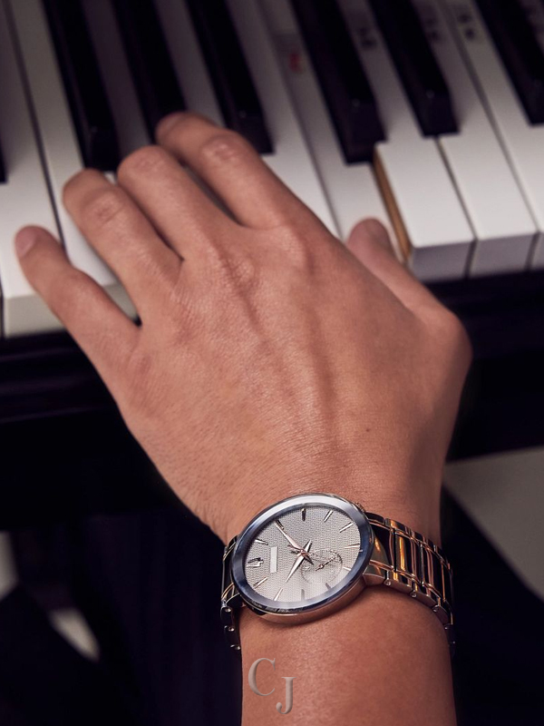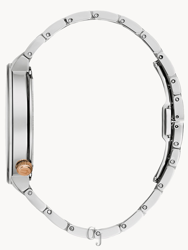 This new Bulova men’s timepiece adds to the Latin GRAMMY® Collection and continues the brand’s celebration of the awards show and the remarkable artists that make it possible. An edge-to-edge, curved metalized sapphire crystal creates an exceptionally modern 42mm case, which features silver-tone stainless steel and a rose gold-tone crown. The textured dial is accented with rose gold-tone hands and markers and a 24-hour sub-dial. On the back of the watch, the screw-back case is stamped with Latin GRAMMY® logo. The watch is paired perfectly with a matching two-tone bracelet with a deployant clasp. Bring the spirit of the Latin GRAMMY® awards and its incredible artists with this new Bulova men’s timepiece.