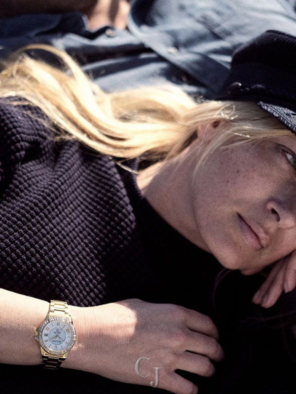 From the Marine Star collection, get swept away in the effortless elegance of this richly detailed women’s timepiece with a gold-tone stainless steel case and bracelet. The case features 24 individually hand set diamonds on a gold-tone bezel and is finished with a sapphire crystal and a white mother-of-pearl dial. Also featuring a deployant clasp closure and water resistance to 100 meters, this must-have watch keeps perfect time while channeling a timeless glamour.