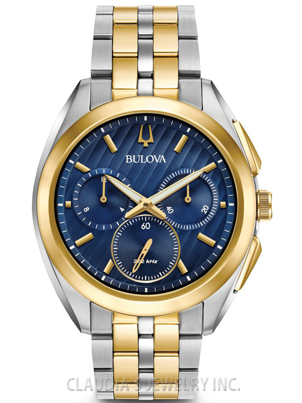 BULOVA MEN’S CURV TWO-TONE BLUE DIAL CHRONOGRAPH 98A159