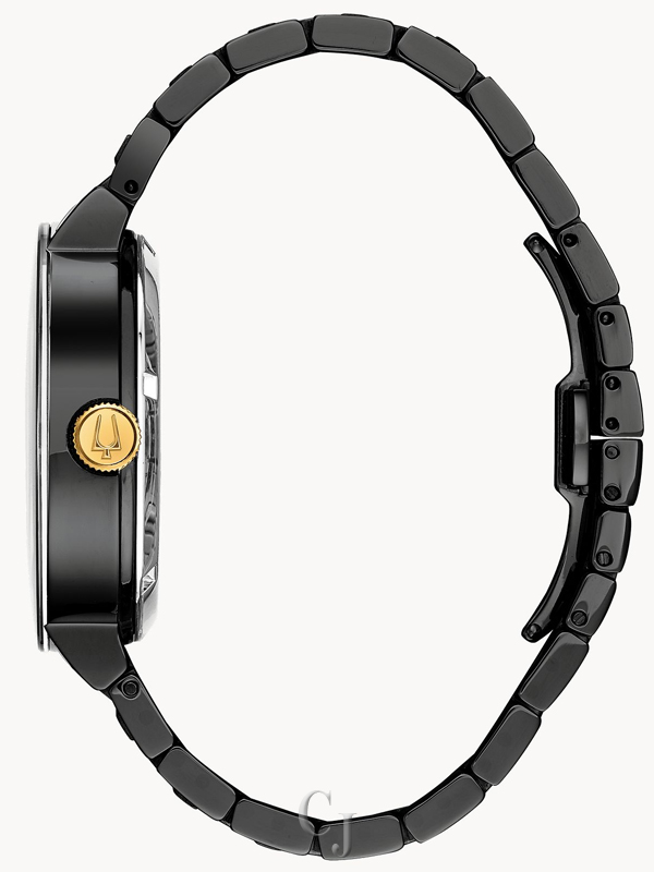 BULOVA MODERN FUTURO BLACK GOLD ACCENT STAINLESS STEEL WATCH 98A203