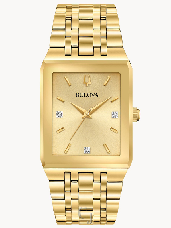BULOVA MODERN QUADRA GOLD CHAMPAGNE DIAL DIAMOND MEN’S WATCH 97D120