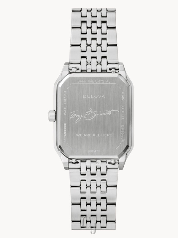 As part of a new partnership with the Tony Bennett Foundation, the “We Are All Here” Duet Bulova men’s timepiece celebrates the timelessness and incomparable talent of the memorable crooner. Taking its inspiration from the classic design of the 1980s, when Bennett staged a roaring comeback, the watch’s silver-tone stainless steel case has a sleek, angular silhouette with polished faceting, paired with a matching stainless steel bracelet. Accented with silver-tone hands and markers, the vertically brushed champagne dial is a study in perfection, with a seconds hand counterbalance shaped like Bennett’s signature folded pocket square. With Tony Bennett’s signature gracing the case back, this Bulova men’s watch pays tribute to one of the greatest performers of all time.