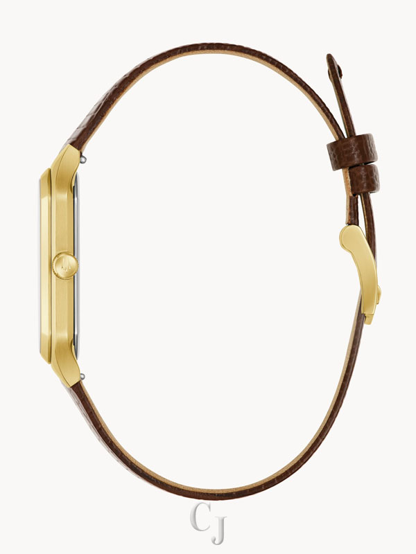 As part of a new partnership with the Tony Bennett Foundation, the “We Are All Here” Duet Bulova men’s timepiece celebrates the timelessness and incomparable talent of the memorable crooner. Taking its inspiration from the classic design of the 1980s, when Bennett staged a roaring comeback, the watch’s gold-tone stainless steel case has a sleek, angular silhouette with polished faceting, paired with a brown embossed Teju lizard leather strap. Accented with gold-tone hands and markers, the vertically brushed black dial is a study in perfection, with a seconds hand counterbalance shaped like Bennett’s signature folded pocket square. With Tony Bennett’s signature gracing the case back, this Bulova men’s watch pays tribute to one of the greatest performers of all time.