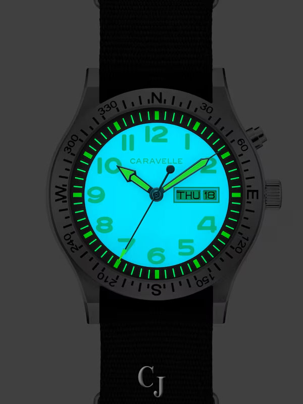 Adventure-ready and built with modern convenience, the Caravelle by Bulova Men’s Lite Up Watch 43C125 combines rugged design with practical function. Featuring a bold black dial with day/date display and a compass bezel, this watch is housed in a durable 39.0mm stainless steel case with mineral crystal protection. Its standout feature — a backlit dial activated with the push of a button — ensures easy readability in any lighting. Powered by precise quartz analog movement, this timepiece is paired with a black nylon strap and fold-over clasp for all-day comfort. Water-resistant up to 50 meters, it’s designed for everyday wear, travel, and outdoor exploration. As an authorized Caravelle dealer, we guarantee authenticity and quality craftsmanship.
