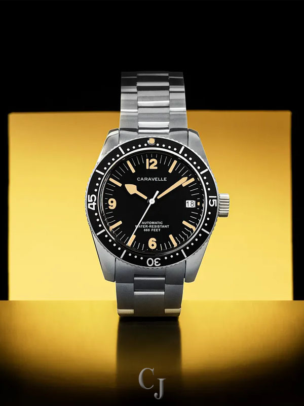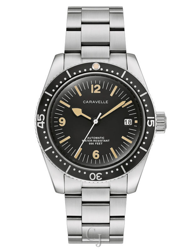 The return of an icon: The men’s Caravelle Sea Hunter is reborn for the modern age. Inspired by one of Caravelle’s most celebrated models, the new Caravelle Sea Hunter is sized for modern tastes at 39mm, with a case crafted from 316L stainless steel and echoing the sporting form of the original. Ensuring ideal legibility and functionality, a high-contrast black dial with a date display and luminescent hands and markers is complemented by a matching rotating 60-minute timing bezel. The Caravelle Sea Hunter is powered by a 21-jewel automatic movement with a power reserve of 42 hours. Paired with a 3-link stainless steel bracelet with a folding clasp and rated to 200m water resistance, this watch can go wherever you do so you can do whatever you want. Experience an icon remade with the men’s Caravelle Sea Hunter.