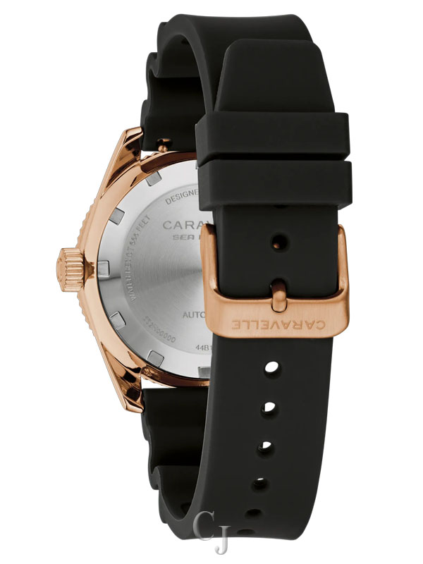 The return of an icon: The men’s Caravelle Sea Hunter is reborn for the modern age. Inspired by one of Caravelle’s most celebrated models, the new Caravelle Sea Hunter is sized for modern tastes at 39mm, with a rose gold-tone case crafted from 316L stainless steel and echoing the sporting form of the original. Ensuring ideal legibility and functionality, a high-contrast black dial with a date display and luminescent hands and markers is complemented by a matching rotating 60-minute timing bezel. The Caravelle Sea Hunter is powered by a 21-jewel automatic movement with a power reserve of 42 hours. Paired with rugged black rubber strap and rated to 200 metres water resistance, this watch can go wherever you do so you can do whatever you want. Experience an icon remade with the men’s Caravelle Sea Hunter.