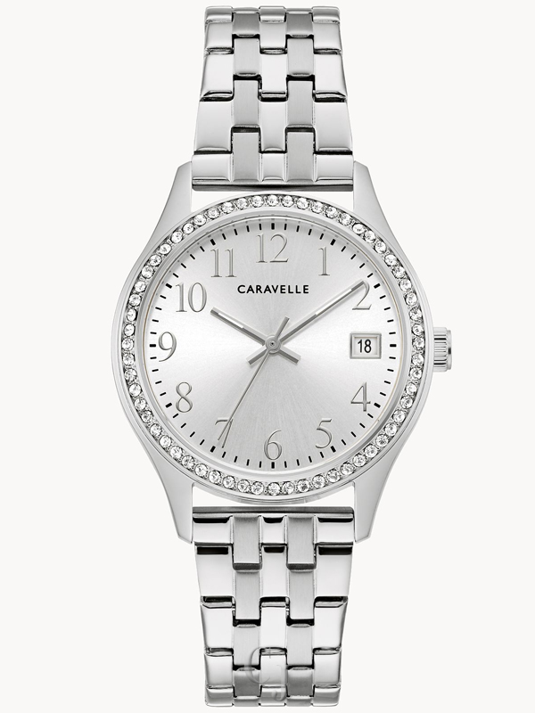 - Crystal accented bezel