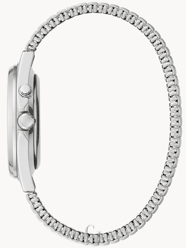 Simple, classic, easy to read gets even easier to read…in the dark. This style has a backlit feature that illuminates the dial and is activated with a pusher at 2 o’clock. Stainless steel case with a full Arabic parchment colored dial also features a military time inner track, day/date window, and luminous hands. Stainless steel expansion band bracelet for easy styling.