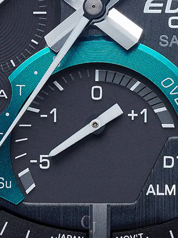 - Analog: 3 hands (hour, minute (hand moves every 10 seconds), second), 4 dials (24-hour, day, dual time hour and minute, dual time 24-hour)