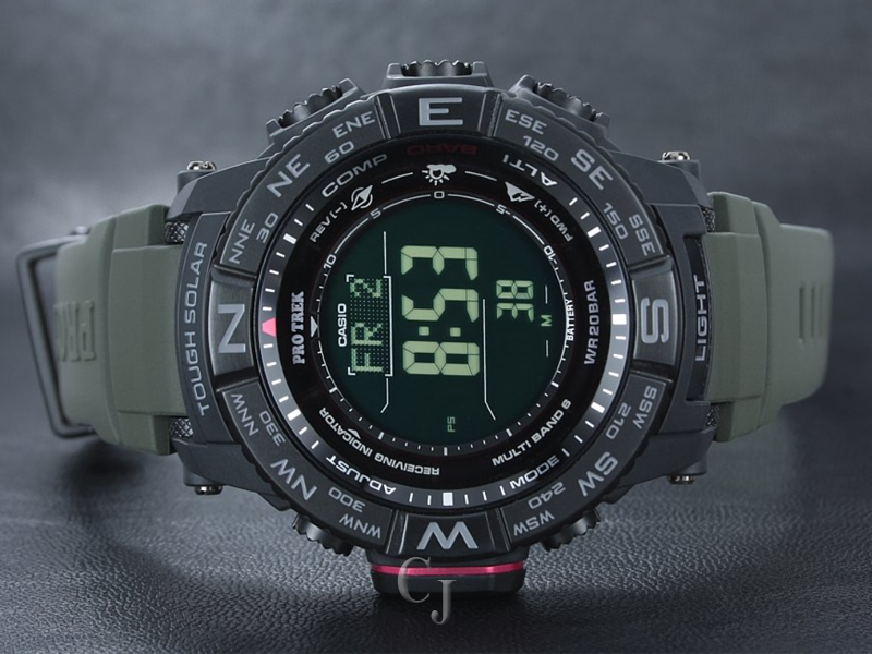 This new addition to the PRO TREK Multi-Field line comes with a highly readable STN LCD that enhances readability. A silicon band provides a better fit to the wrist and the large rotary bezel creates a design that is bold, even for a PRO TREK model