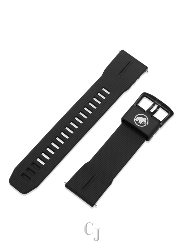 The watch comes with two interchangeable bands, both made from materials that will gratify nature lovers. The cloth band is made of recycled plastic bottles and features the Alpine all over print for which MAMMUT designs are known, and the soft urethane band is made with biomass plastics.