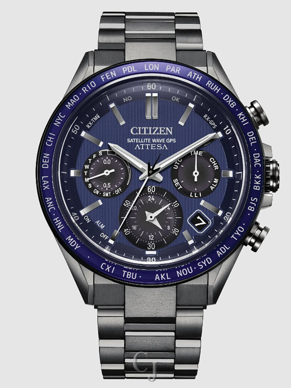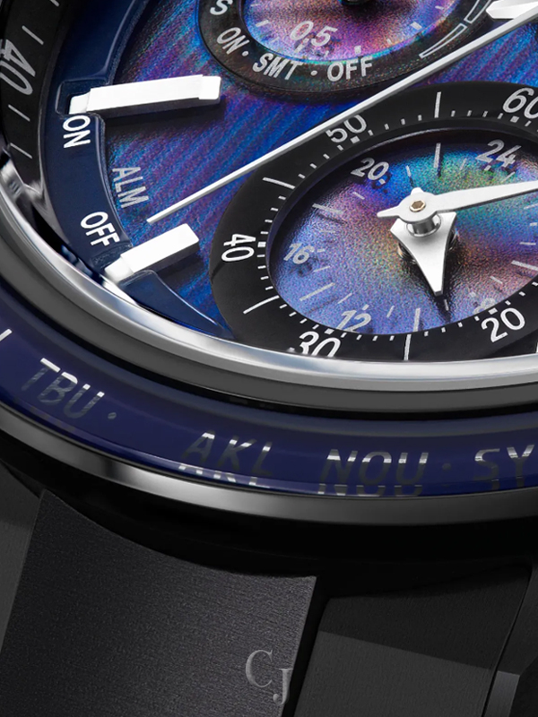 Powerful design and advanced technology drive the new luxury Attesa. Since its 1987 launch, the Attesa has delivered dependable performance via expert titanium-processing know-how and innovative chronograph technology, and the latest addition to the collection is no different. A 44.6mm Super Titanium™ case solidifies the lightweight, durable construction of the timepiece, while a blue and gray DLC colorway alongside a duo of chronograph pushers and crown guards provide a sleek and sporty touch. The timepiece is secured to the wrist via a refined triple-link Super Titanium™bracelet. A world time bezel frames the textured blue dial and its three registers, with applied silver-tone accents and a date window between 4 and 5 o’clock adding dimensionality alongside utility.
