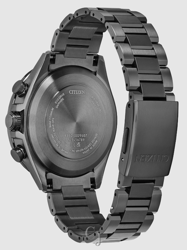 Joining the cutting-edge Attesa collection of watches, the sharp chronograph features a scratch-resistant Super Titanium™ case with a black DLC coating, measuring 44.6mm in diameter. Secured to the wrist via a matching bracelet to solidify the lightweight, durable construction of the timepiece, a blue world time equipped bezel hints at the elevated technological capabilities of the watch, while a duo of chronograph pushers and crown guards provide a sleek and sporty touch. On the Earth-inspired dial, a three-register chronograph is at work, with touches of greens, purples, and blues adding crystalline-like dimensionality alongside the utility of a date display