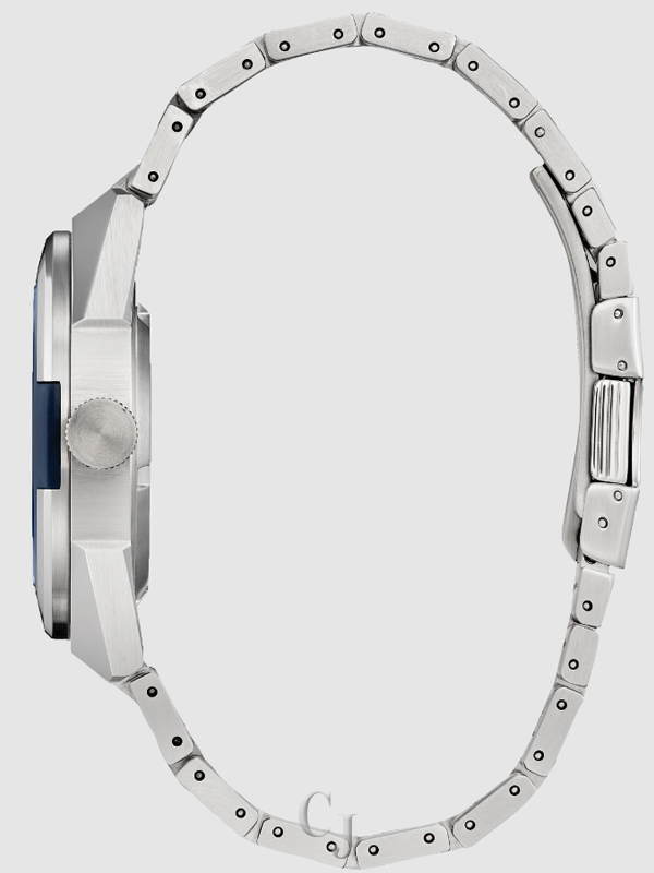 A silver-tone stainless steel case just under 41mm enables comfortable, unafraid wear, with its integrated construction and two-tone bezel highlighting Citizen’s expert finishing abilities. A handsome tapered bracelet secures the watch to the wrist, its design following the aesthetic of the case in its use of polished and brushed facets. Beneath a sapphire crystal, the watch’s textured blue dial features applied indices and lume-filled hands, each working together to offer incredible legibility alongside a utility-driven 3 o’clock date window. Water resistant up to 100 meters. Caliber 0950.