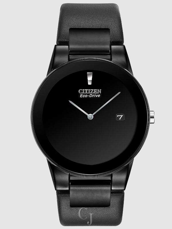 CITIZEN AXIOM ECO-DRIVE BLACK DIAL LEATHER BAND MEN’S WATCH AU1065-07E