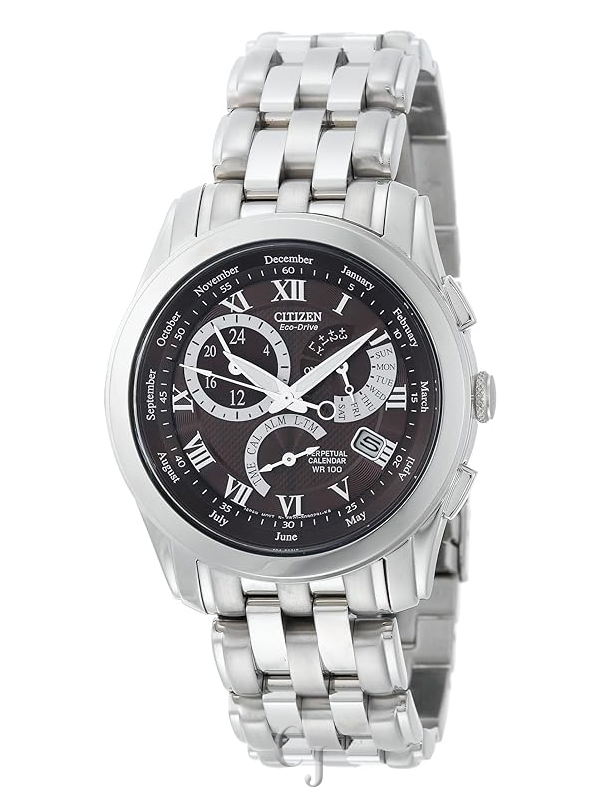 The Citizen BL8000-54X, is a meticulously crafted men’s watch that seamlessly combines style and functionality. With a round shape and a 40-millimeter stainless steel case featuring a slim 10-millimeter thickness, it exudes a timeless aesthetic. The mineral dial window protects the brown dial, accented by a stationary stainless steel bezel. The 20-millimeter stainless steel band, secured with a Push Button Foldover Clasp with Safety, ensures both comfort and durability. Notable features include a date calendar, alarm feature, dual-time display, perpetual calendar, and water resistance up to an impressive 330 feet. Driven by Japanese Quartz movement, this timepiece is a sophisticated and reliable companion suitable for various occasions.