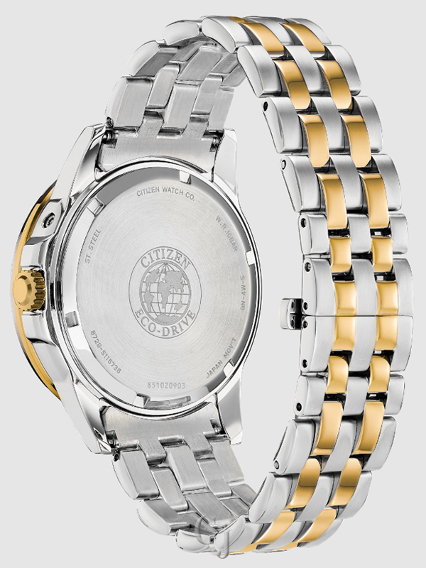 Bring sophistication to your day with the new CITIZEN Calendrier Moonphase, powered by any light with Eco-Drive. This timeless watch features analog month/day/date. Men’s watch featured with two-tone stainless steel case and bracelet with cobalt blue dial. Featuring our Eco-Drive technology – powered by light, any light. Never needs a battery. Caliber number 8730.