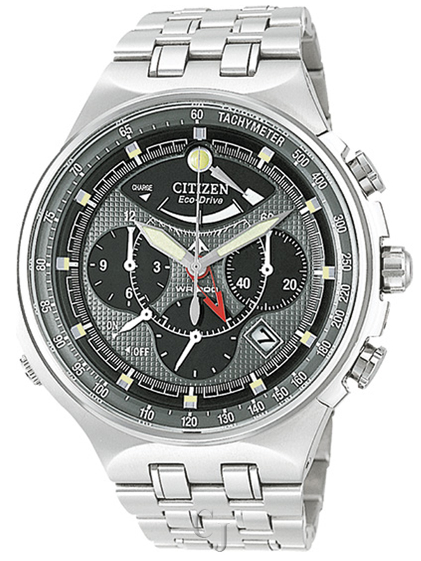 The Citizen Calibre 2100 features the ultimate chronograph, 1/5 second sweep hand, and the first instant zero reset button in Eco-drive. The Calibre 2100 embodies the combination of style and technology. Titanium case and bracelet. Grey patterned dial with black subdials. Date displays at 4 o’clock position. 1/5 second chronograph measures up to 12 hours. Power reserve meter. Alarm. Screw-down crown. Screw down case back. Safety fold over clasp with push button. Anti-reflective crystal. Water resistant at 200 meters (660 feet). Citizen Calibre 2100 Titanium Chronograph Men’s Watch AV0021-52H / AV0021/52H / AV002152H / AV0021