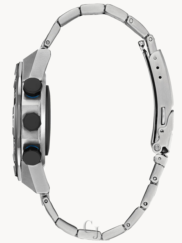 Introducing a genius timepiece like you’ve never seen before with a 15+ day battery life – the new CZ Smart Hybrid has all the style of an iconic Citizen design combined with the best-tech functions of a smartwatch. This distinctive smartwatch features a 44mm silver-tone stainless steel sport bezel and bracelet with functioning dials on the black and white display with pops of blue on the pushers and luminous analog hands. This customizable smartwatch keeps up with your busy lifestyle. Utilize the Citizen Connected app to manage your notifications, change your dials and see your fitness stats. Stay on track with the convenience of information at a glance on your hybrid smartwatch display. You can choose the dial that fits your mood or style and customize the information on display to meet your needs including, steps, weather, heart rate, and more. *CZ Smart Functions require the Citizen Connected app, available in the UK/US/CANADA/MEXICO app stores only.
