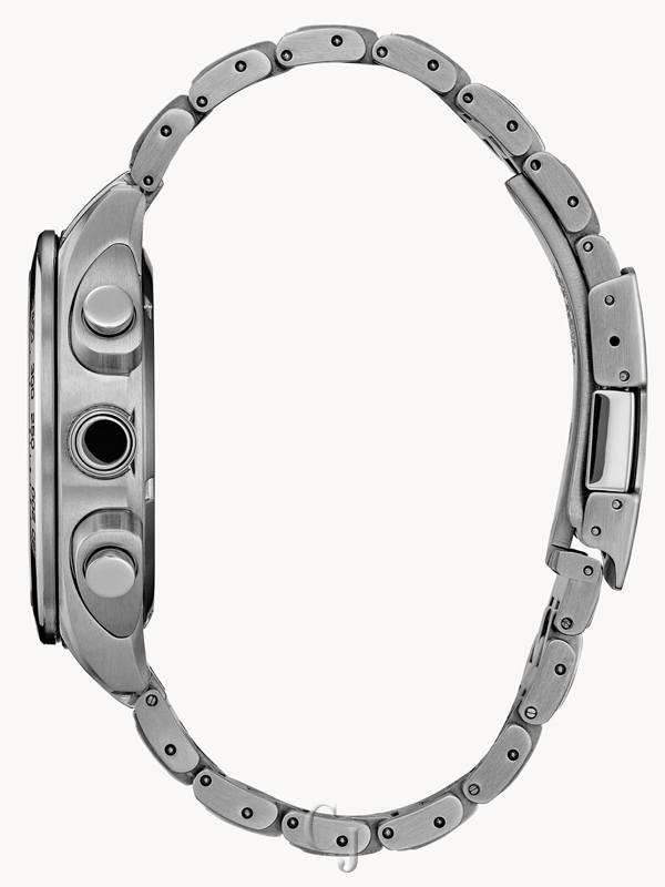 Our newest addition to the Sport Luxury collection gives a stylish update to a luxury timepiece. Designed to be versatile yet elevated and featuring a silver-tone stainless steel case with 3-piece construction and a silver-tone dial with date, 12/24-hour time, a chronograph that measures up to 60 minutes, a tachymeter, and sapphire crystal. The stainless-steel bracelet features a fold-over clasp with push buttons for easy accessibility. Water resistant up to 100 meters and featuring Citizen’s sustainable Eco-Drive technology powered by any light that never needs a battery, this striking men’s watch transitions seamlessly from day into evening with style. Caliber B620.
