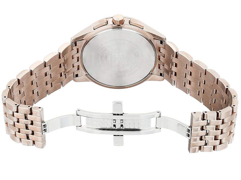 rose gold-tone stainless steel case and bracelet with bright white dial and sapphire crystal.