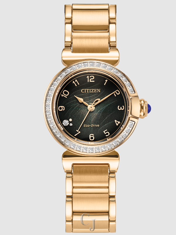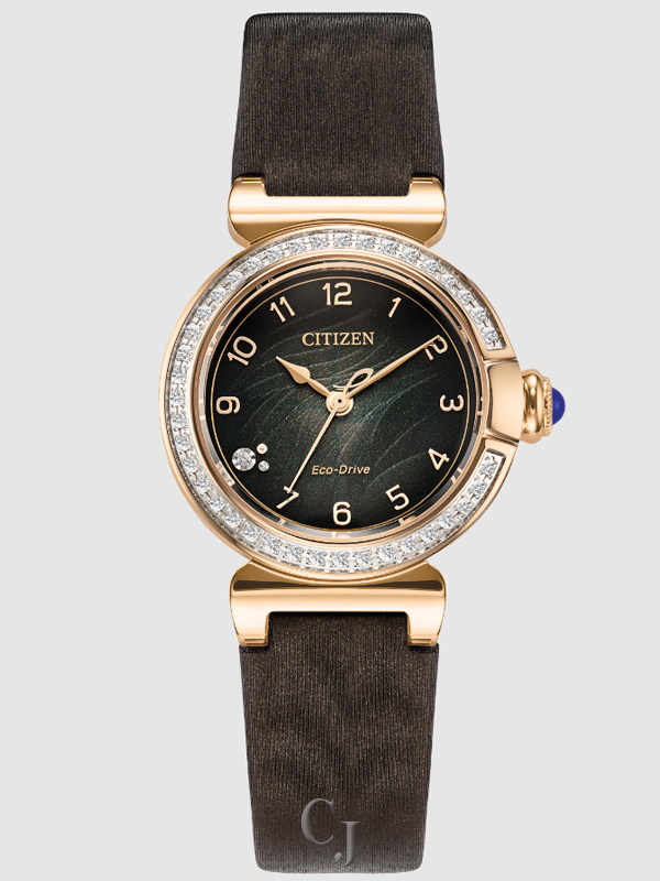Classic lines and hints of romance make this newest timepiece to our women’s collection, the Citizen L Mae, a glamorous addition of sustainable luxury. With a 26mm case design inspired by a vintage perfume bottle and featuring the curved, sleek lines of May bells, the diamond-set bezel shape has a distinct feature at the 3 o’clock position, where the crown resembles an elegant perfume stopper.