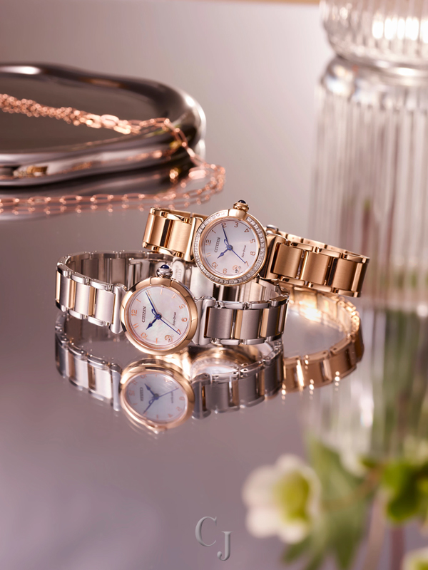 Classic lines and hints of romance make this newest timepiece to our women’s collection, the Citizen L Mae, a glamorous addition of sustainable luxury. With a 26mm case design inspired by a vintage perfume bottle and featuring the curved, sleek lines of May bells, the diamond-set bezel shape has a distinct feature at the 3 o’clock position, where the crown resembles an elegant perfume stopper.