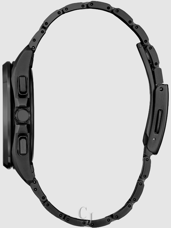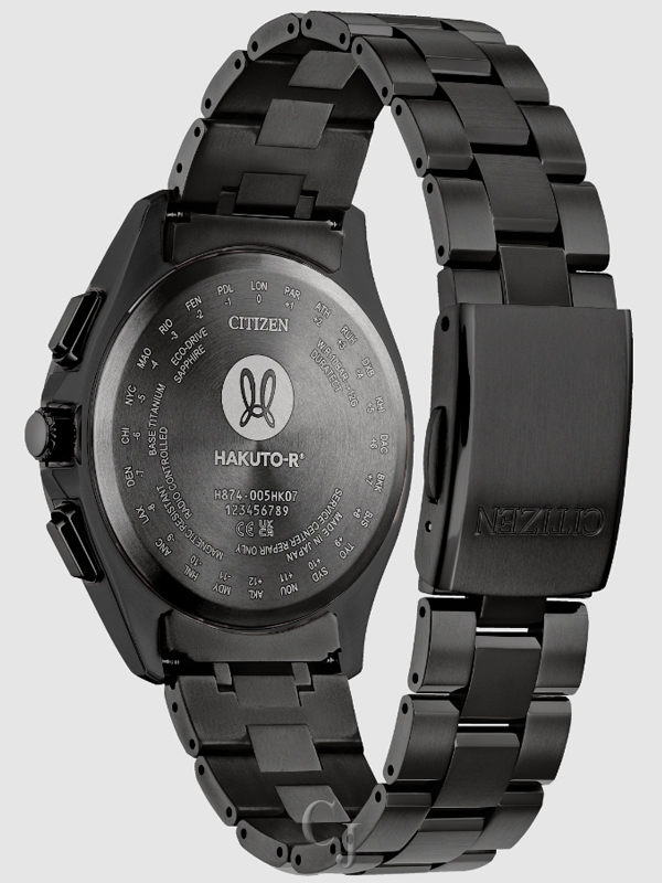 A Super Titanium™ case in gray DLC anchors the 41.5mm design. A matching bracelet expands upon the style and secures the watch to the wrist, while a fine mix of polished and brushed surfaces add dynamism to the modern style. Beneath a sapphire crystal, a deep blue dial is on view, also featuring a moonphase display, and 4 o’clock date window balancing technological utility with intrigue for the eye. Sustainably powered by Citizen’s proprietary Eco-Drive technology to provide light-powered vitality without ever needing a battery. Water resistant up to 100 meters. Caliber H874.