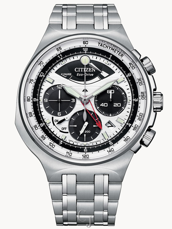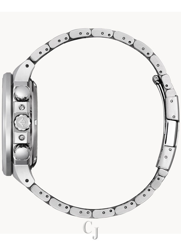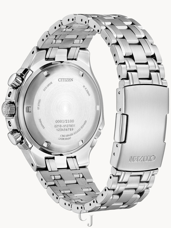 Bold, sporty, and sustainably powered. Citizen raises the adventure bar in the newly relaunched Caliber 2100 Series of professional-grade timepieces with a hand-assembled movement and part of the Promaster Land collection. The limited-edition design is inspired by the iconic original in silver-tone stainless steel with a 3-piece case construction that features a metal dial and four contrasting subdials. This stylish men’s sport watch also features a 1/5 second chronograph that measures up to 12 hours, an instantaneous flyback zero reset button, a tachymeter, power reserve indicator and date, luminous hands and markers, and an anti-reflective sapphire crystal. The distinctive design is powered with Citizen’s proprietary Eco-Drive technology that converts energy from any type of light and never needs a battery. Water resistance to 200 meters. Limited to 2100 numbered pieces worldwide. Caliber number E210.