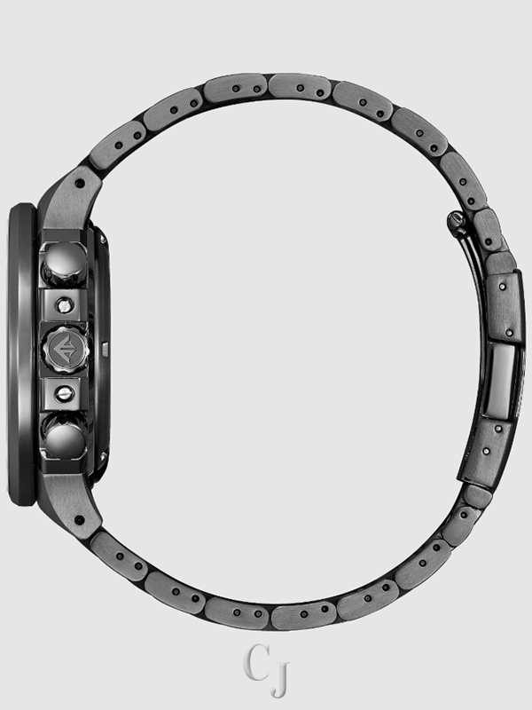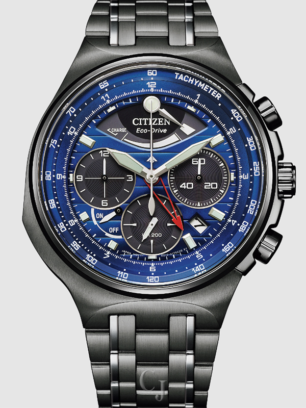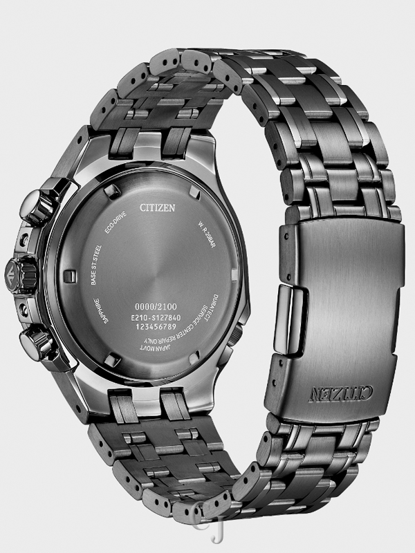 Bold, sporty, and sustainably powered. Citizen raises the adventure bar in the newly reimagined Caliber 2100 Series of professional-grade timepieces with a hand-assembled movement and part of the Promaster Land collection. The limited-edition design is inspired by the iconic original in a new, black DLC-plated stainless steel finish with a 3-piece case construction that features a metal dial in blue and four contrasting subdials. This stylish men’s sport watch also features a 1/5 second chronograph that measures up to 12 hours, an instantaneous flyback zero reset button, a tachymeter, power reserve indicator and date, luminous hands and markers, and an anti-reflective sapphire crystal. The distinctive design is powered with Citizen’s patented Eco-Drive technology that converts energy from any type of light and never needs a battery. Water resistance to 200 meters. Limited to 2100 numbered pieces worldwide. Caliber number E210 .